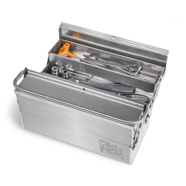 Caixa de ferramentas extensível com 5 divisões, em aço inox AISI 304