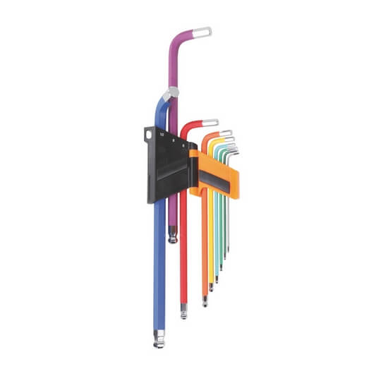 Jogo de 9 chaves sextavadas com ponta de bola, coloridas