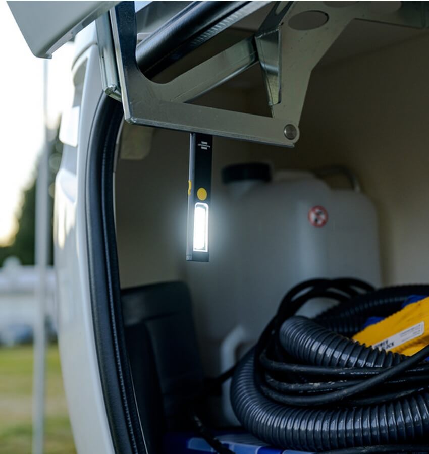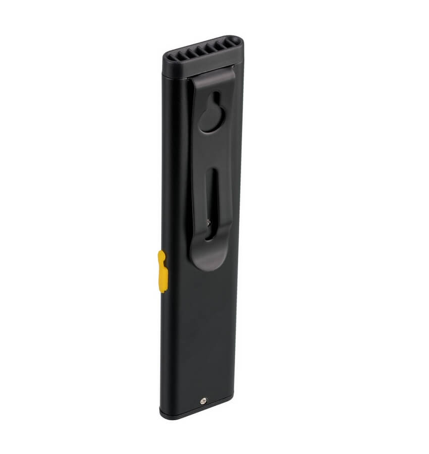 A luz de inspeção com LED COB e porta USB pode ser fixada em bolsas ou cintos graças a um prático clipe, e também pode ser fixada em superfícies metálicas graças a um íman
