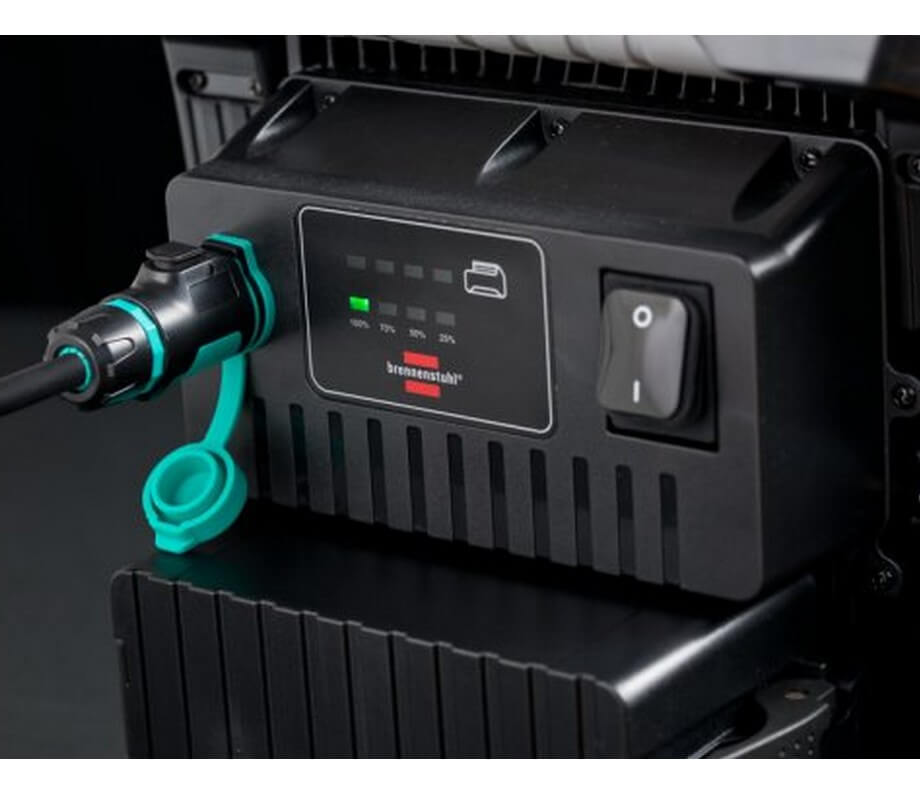 O projetor é resistente a impactos, está equipado com tecnologia de conexão inovadora. Graças à tecnologia híbrida, o projetor está equipado com LEDs COB, pode ser usado com bateria e com energia da rede (mobilidade máxima adquirida). Em caso de interrupção, a fonte de alimentação muda automaticamente para o modo de bateria.